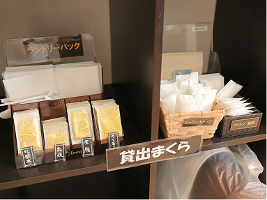 シャンプー、コンディショナー、ボディソープ、歯ブラシ、髭剃り、バスタオル、フェイスタオル、手鏡、ドライヤー、ティーセット、パジャマ、ガウン、加湿器。その他フロントにてレディスセット・ヘアーブラシ・ボディスポンジもご用意しております。その他フロントにて貸出品のご用意もございます。