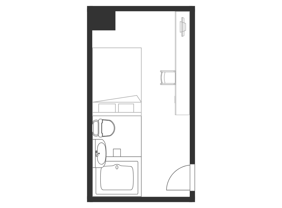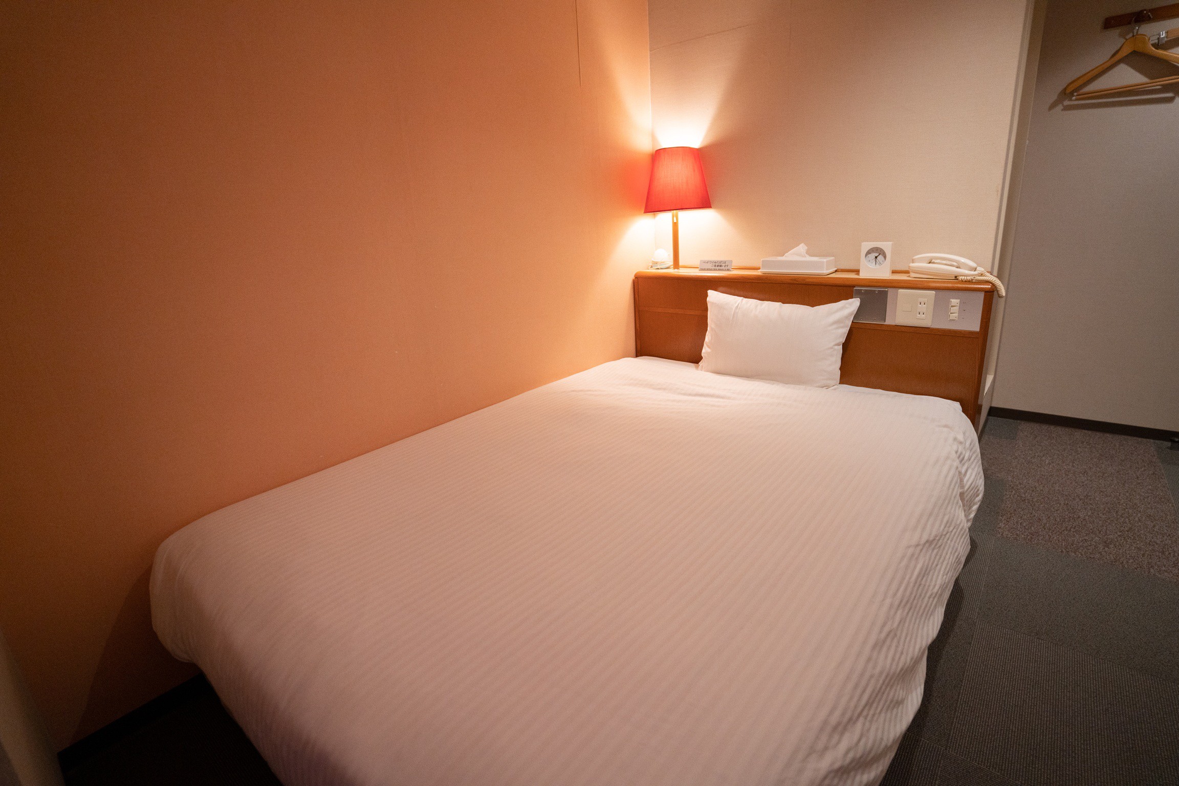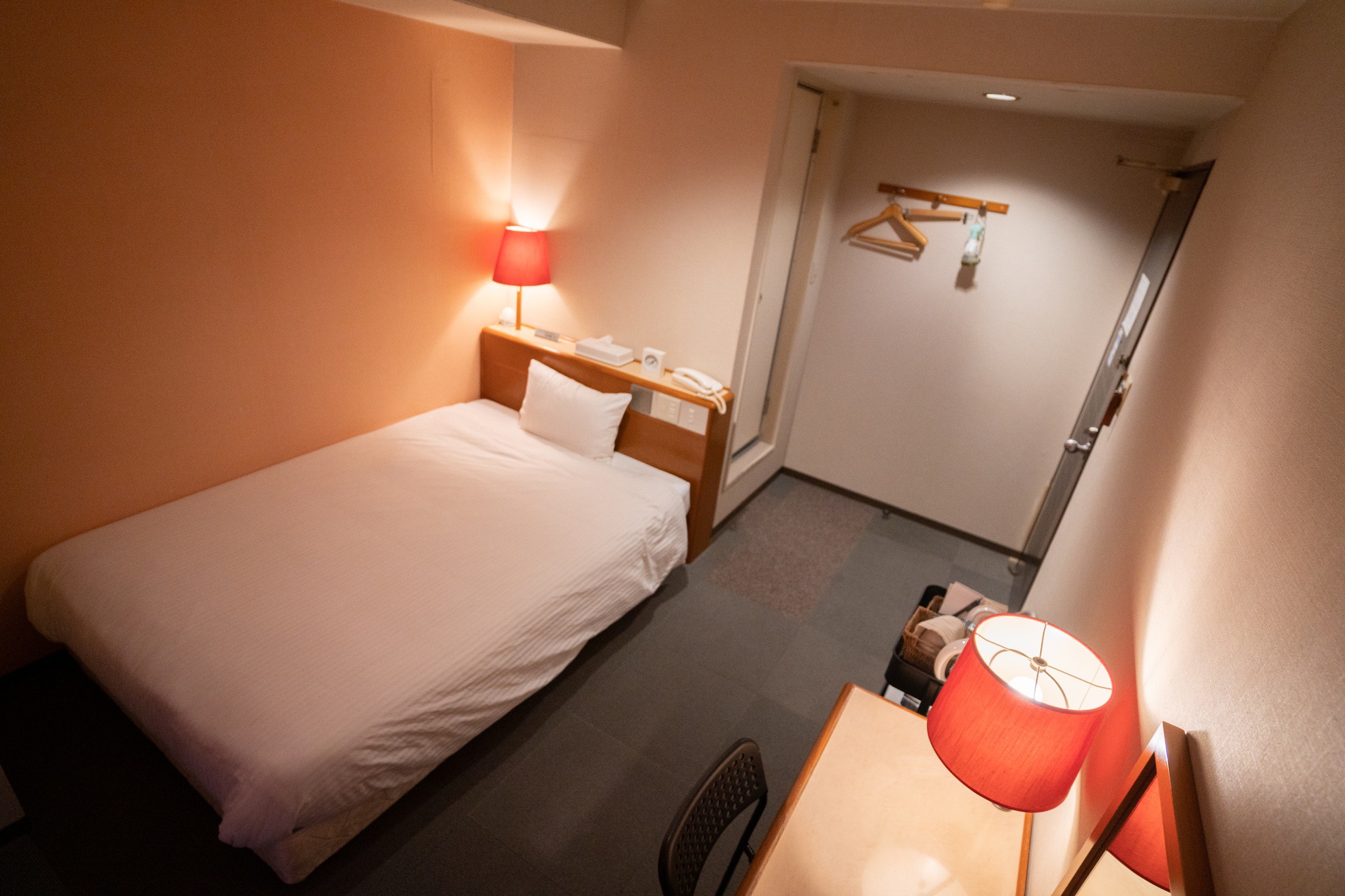 ご出張や一人旅の方にオススメの、洋室シングルルームです。ベッドの大きさは全室ダブルサイズのため広々ご利用いただけます。