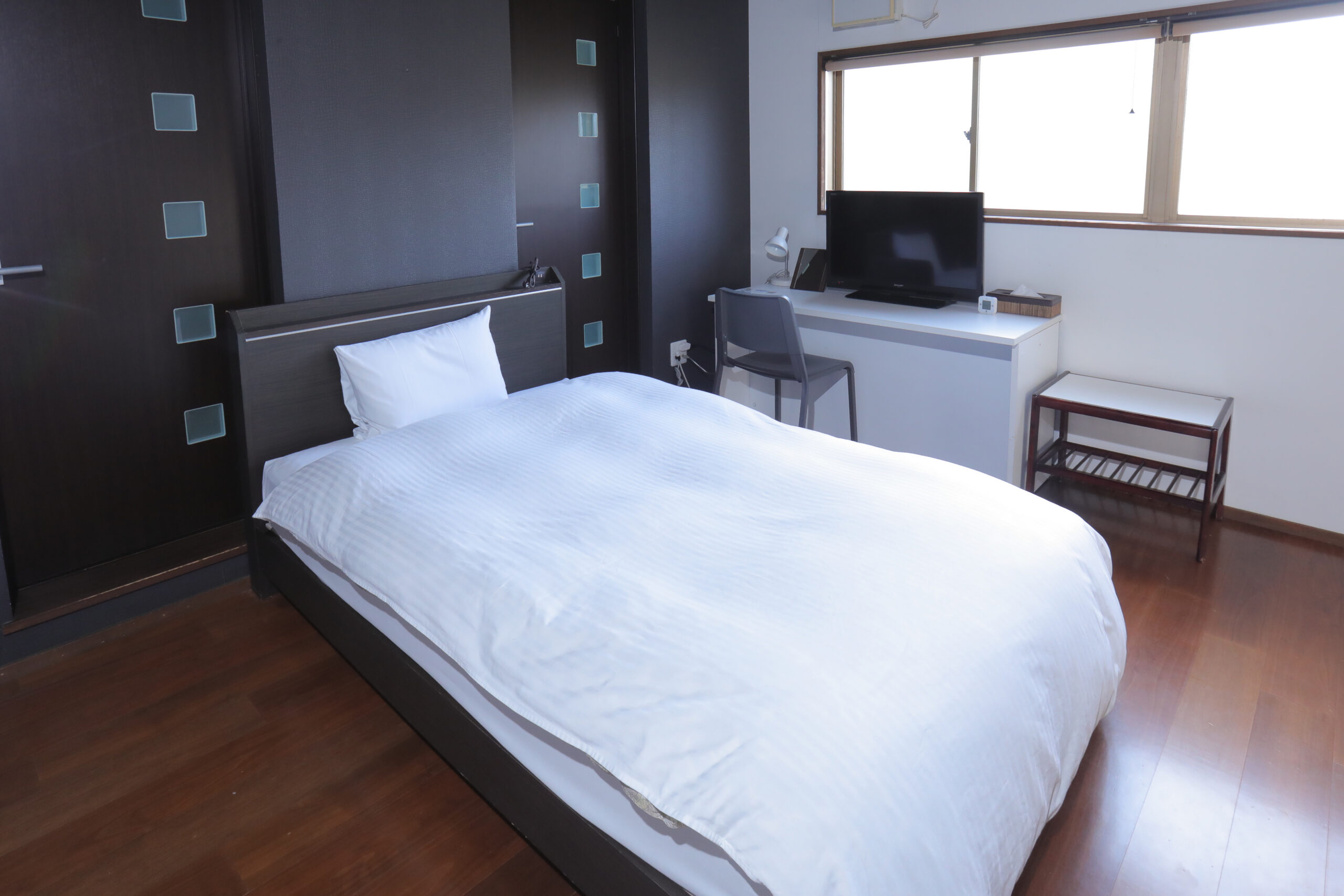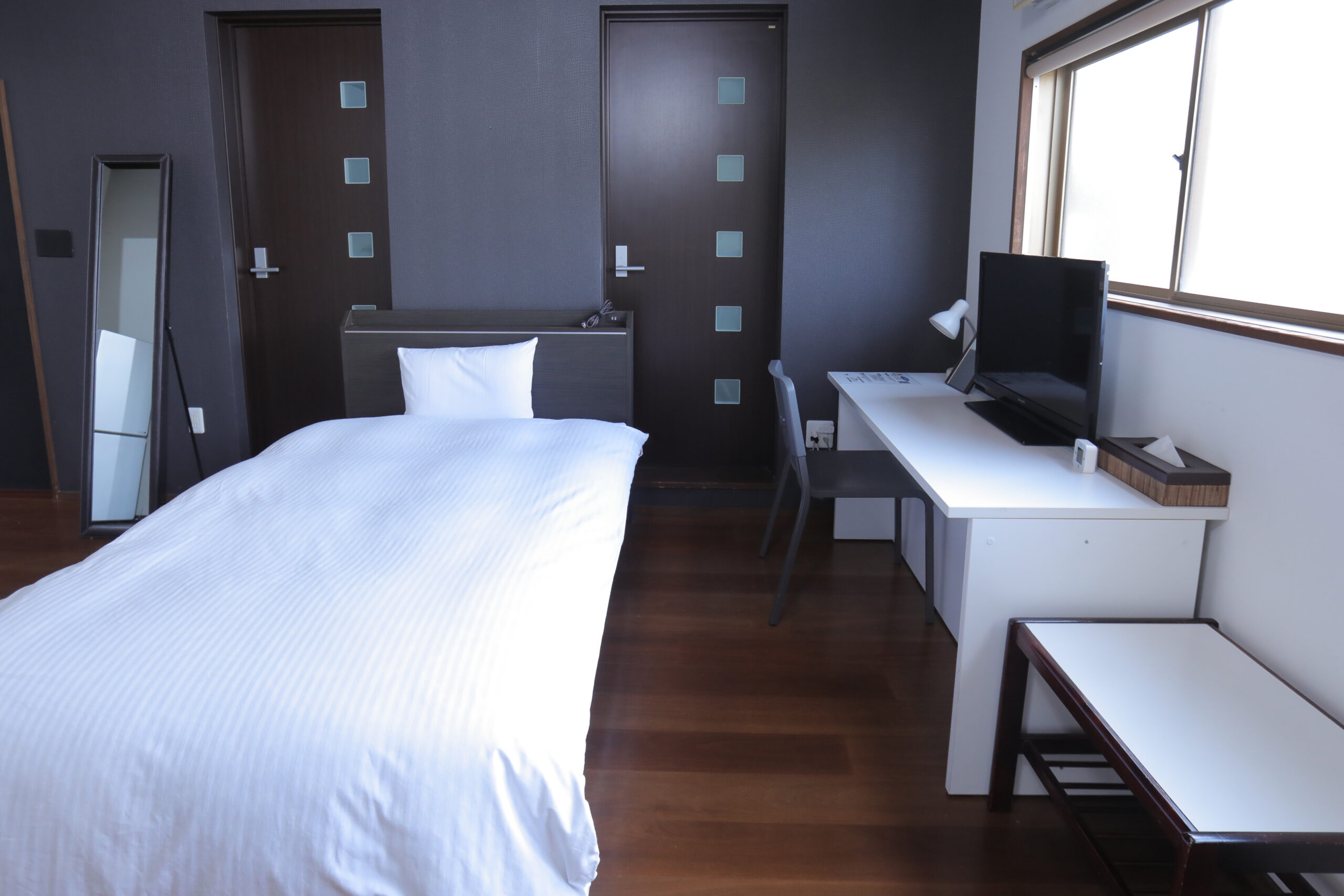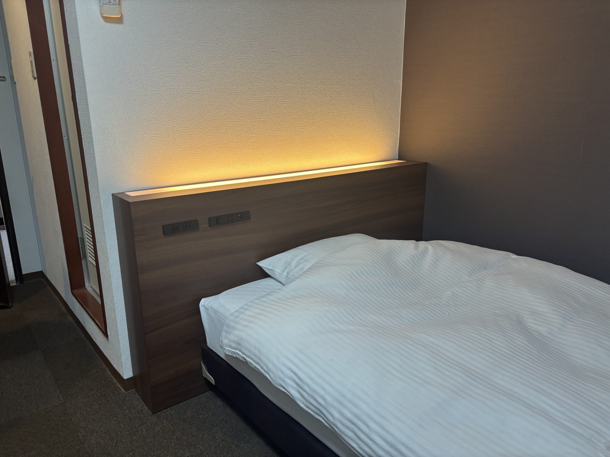ご出張や一人旅の方にオススメの、洋室シングルルームです。ベッドの大きさは全室セミダブルのため広々ご利用いただけます。