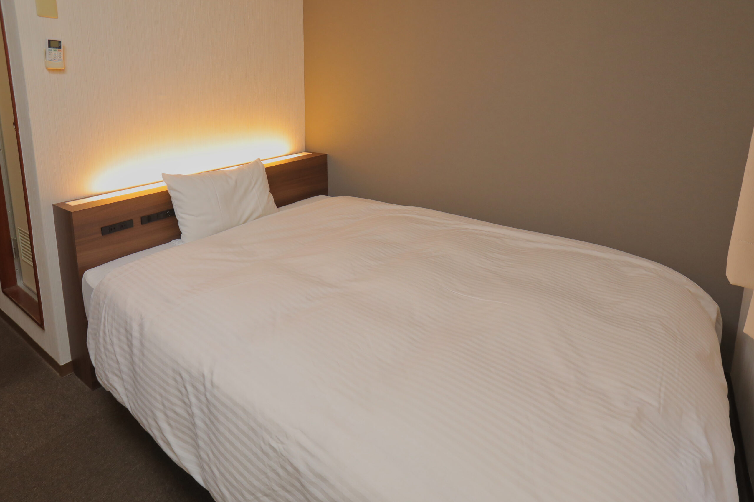 1名でのご利用はもちろん、ご家族やカップルのお客様にもおすすめです。ダブルサイズのベッドを設置した客室でゆったりとおくつろぎください。